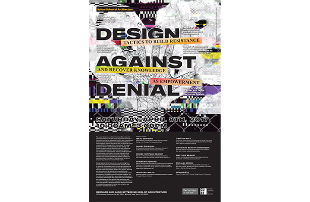 Design Against Denial aims to be a countervailing force for open discussion and a mechanism to promote tactics to resist the increasingly binary thinking behind polarizing rhetoric. The symposium will present ideas for resistance in both the virtual and physical realms. Each session, morning and afternoon, will be opened with presentations by researchers and designers working to communicate science, environment, and design thinking to a wide audience. The four talks will be followed by a moderated panel discussion of emerging technologies and opportunities for the invention and presentation of vivid real and fake futures that can speak convincingly across the language barrier that divides those who believe in socioenvironmental outcomes modeled on probabilities grounded in digital data collection and analytics—and those who do not.